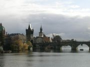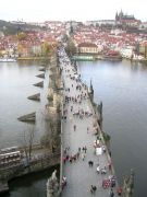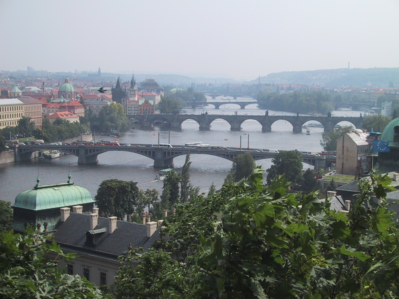 PRAGA, VISTA DEL RIO MOLDAVA Y DE FONDO EL CASTILLO Y LA OTRA SON LOS PUENTES DE PRAGA